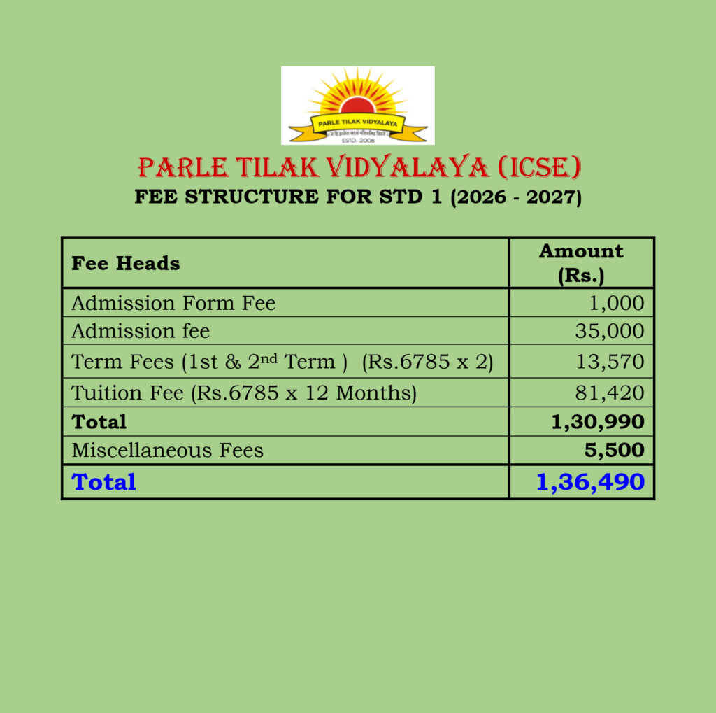 The Parle Tilak Vidyalaya (ICSE) is a co-educational institution, established in 2008 and was granted Permanent Affiliation by the ICSE Council on 27th May, 2016.