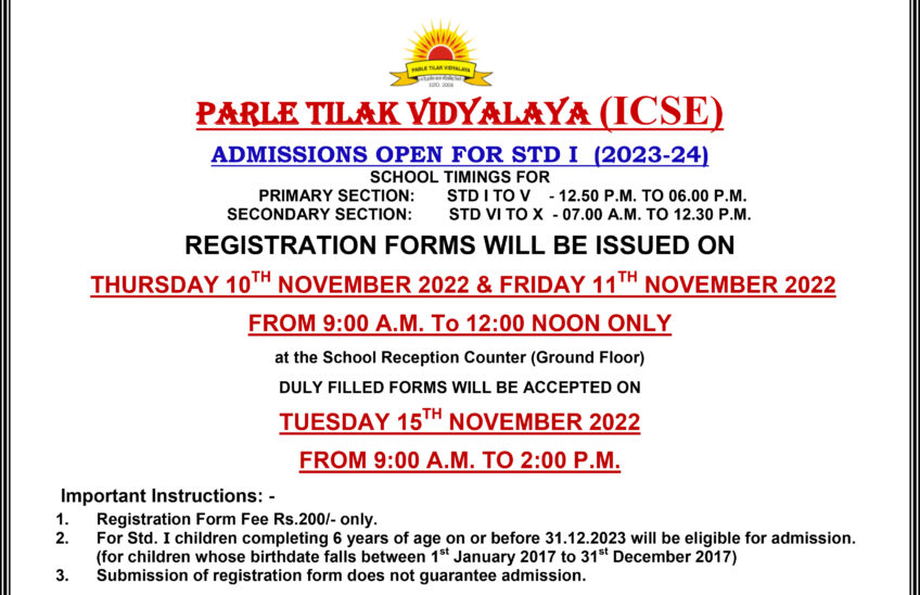 ADMISSIONS OPEN FOR STD I (2023-24)