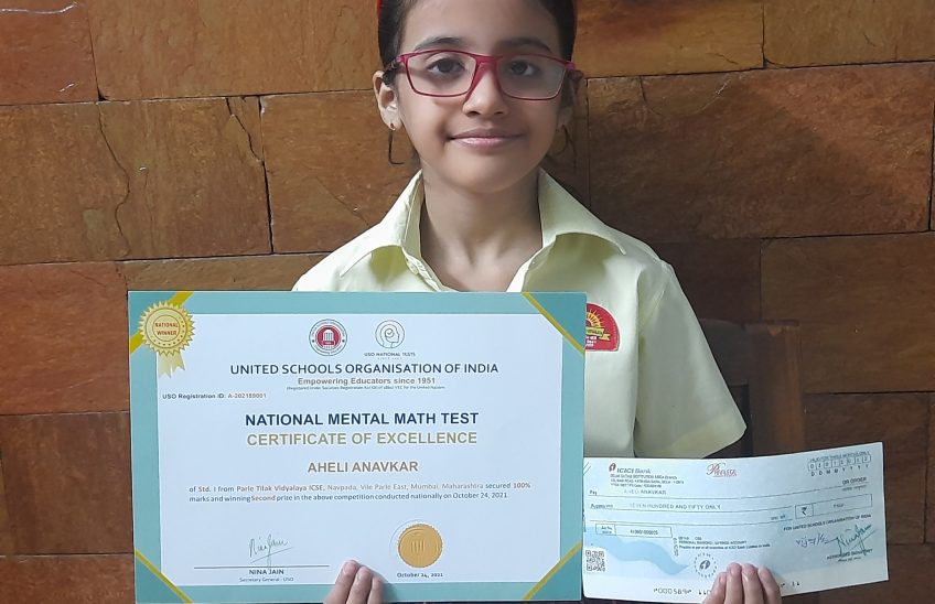 AHELI ANAVKAR OF GRADE I-B wins at National Level in USO Online Tests 2021.