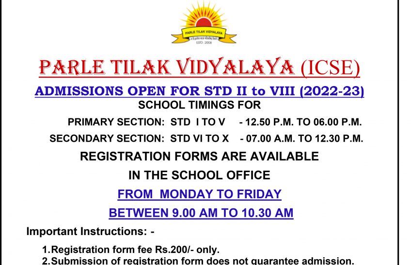 ADMISSIONS OPEN FOR STD II to VIII (2022-23)