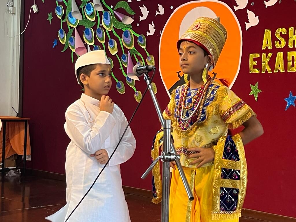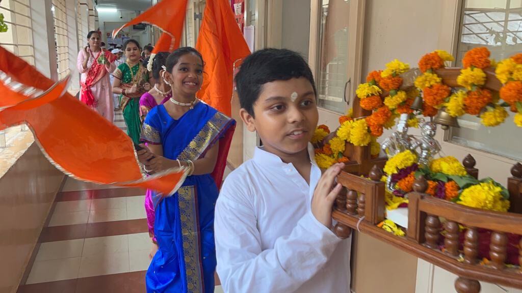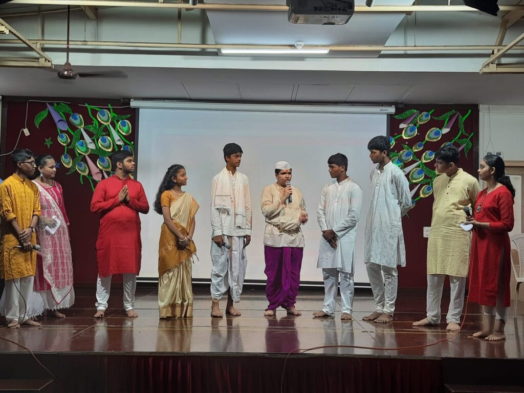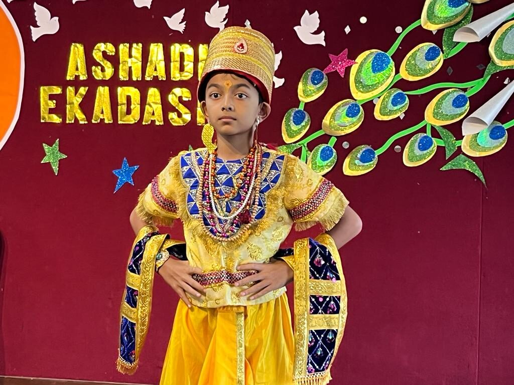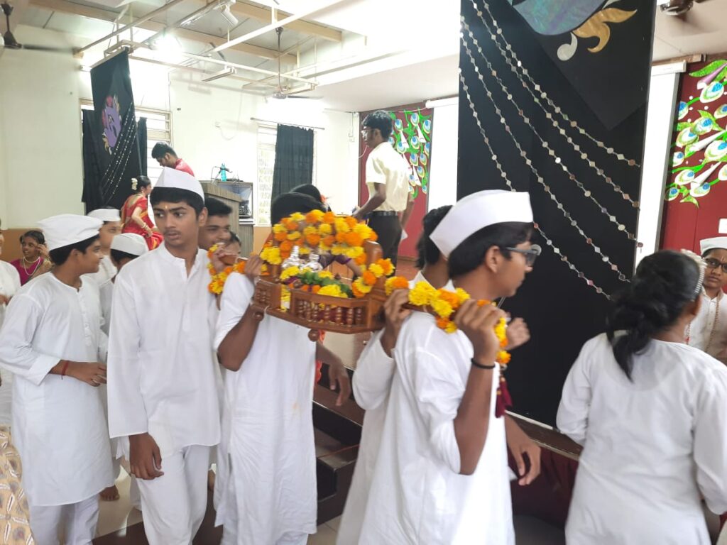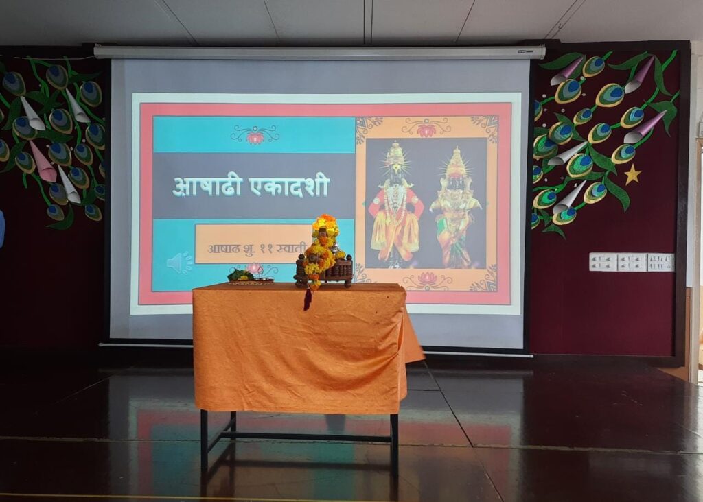 The students of the primary and secondary sections participated in various cultural activities and performances. They sang devotional songs, enacted a skit and recited religious verses. Dindi Sohada (Dindi Ceremony) was organised in the school auditorium and corridors to celebrate Ashadi Ekadashi. These students carried saffron flags, palanquins and also Tulsi Vrindavan on their heads.