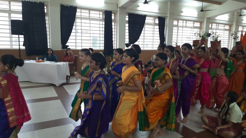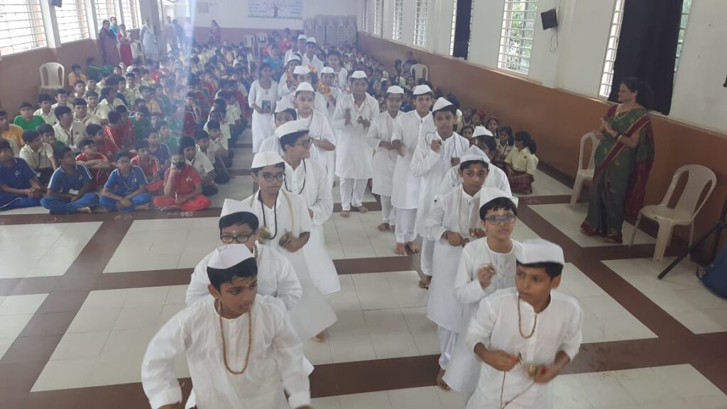 In the Primary Section assembly, students first sang the Maharashtra song. The program then continued with a heart-touching skit by the students of Grades IV and V that got everyone reminiscing about Sant Namdev. The students of Grades III and V, dressed as Varkaries. Students also put up a graceful dance performance.