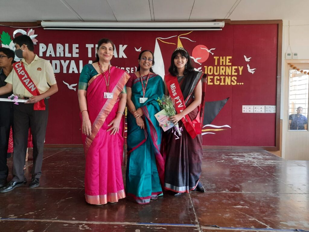 The programme began with an address by the Principal, Dr.(Mrs.) Arnavaz Bhagat, encouraging the students to soar high into the limitless sky. This was followed by a stand-up comedy act, a few entertaining games, and the most exciting personality contest titled ‘Master and Miss PTV (ICSE)’. To further enliven the ceremony the students of Std IX performed a lovely dance to a medley of popular songs. The outgoing batch was enthralled watching their school journey through a collection of their candid pictures in a short video presentation.