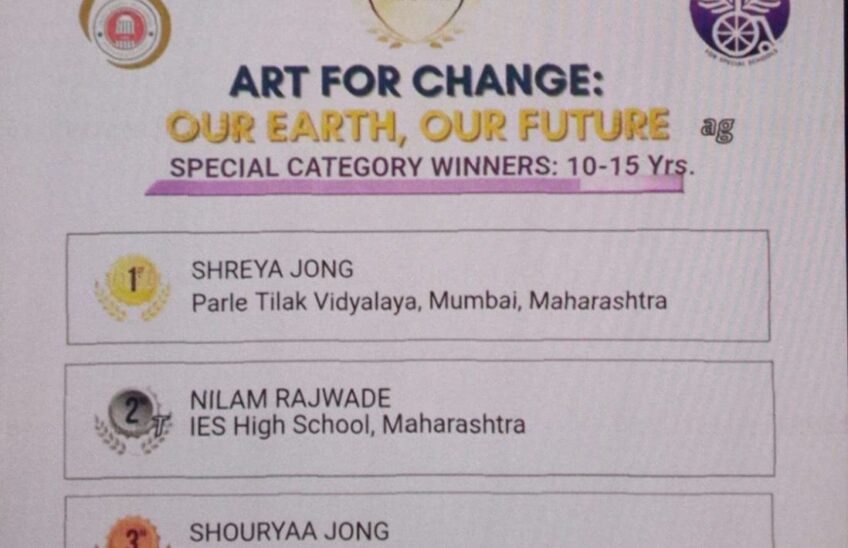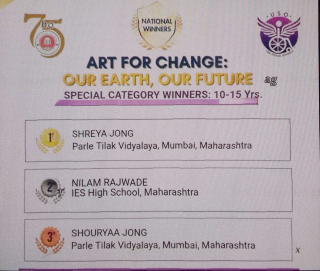 Parle Tilak Vidyalaya (ICSE) is delighted to share a moment of pride and joy as Shreya Jong (grade 9) has won the First Prize and Shouryaa Jong (grade 8) has won the Third Prize in the Special Category at the Art for Change Competition, organised by United Schools Organisation of India (USO) at the National level.