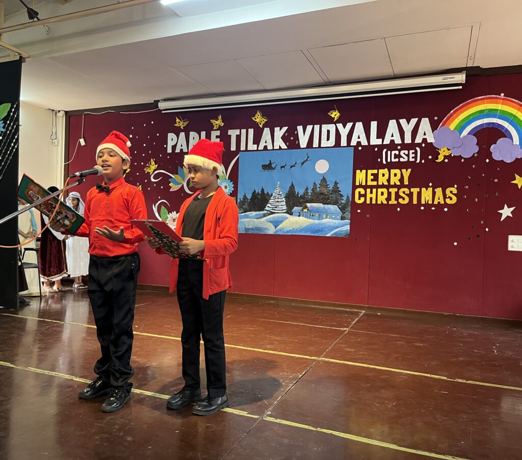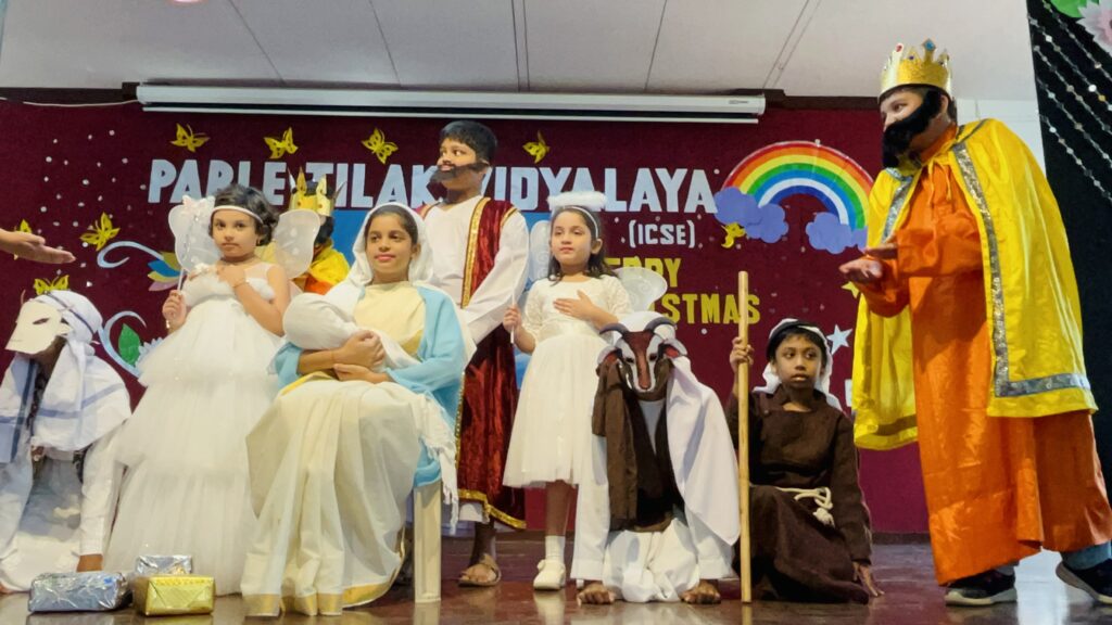 Christmas is the festival which inspires the spirit of sharing, caring and rejoicing. To inculcate in students these values, Parle Tilak Vidyalaya (ICSE), Primary Section, observed Christmas Day through a mass assembly on 23rd December, 2022. The event started with the elucidation of the significance of Christmas celebration, followed by a magnificent Tableau depicting the birth of the son of God, Lord Jesus Christ. A melodious performance of Christmas carols was also put up.