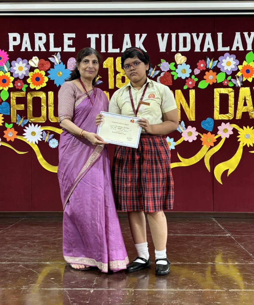 We are delighted to share that Miss Mandeepa Baishakha, a student of Grade 7 at Parle Tilak Vidyalaya ICSE, has brought laurels to our school by securing the First Prize in the prestigious Times NIE competition – “My Favourite Newspaper Articles.”