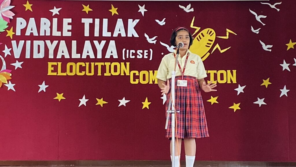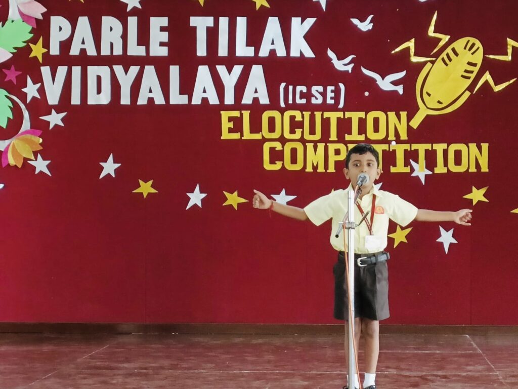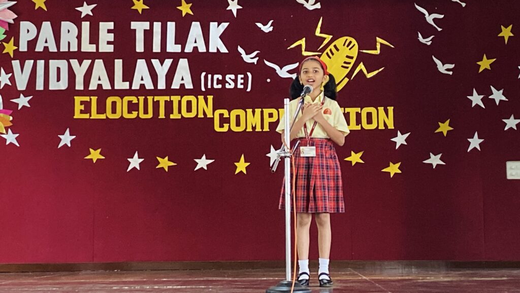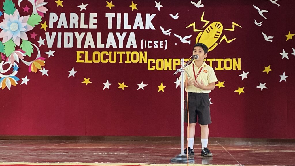 Keeping up with the ever changing demands of the world, the students of the Primary Section of Parle Tilak Vidyalaya (ICSE) yet again proved their mettle in the English Elocution Competition. While the students of Grades I and II (Group A) recited poems on ‘Nature’, the students of Grades III and IV (Group B) and Grade V (Group C) charmed the judges and the audience with their expressiveness on various topics like Importance of Reading Books, Family Values, Unity in Diversity, Make in India, etc.