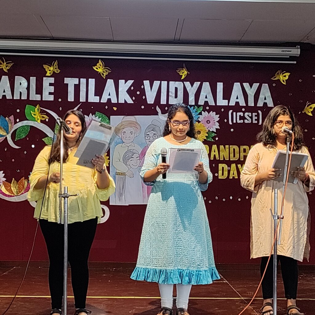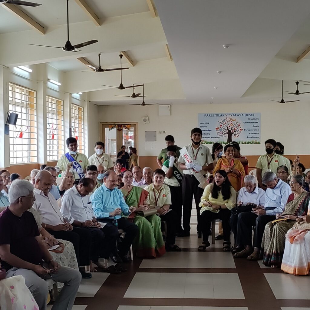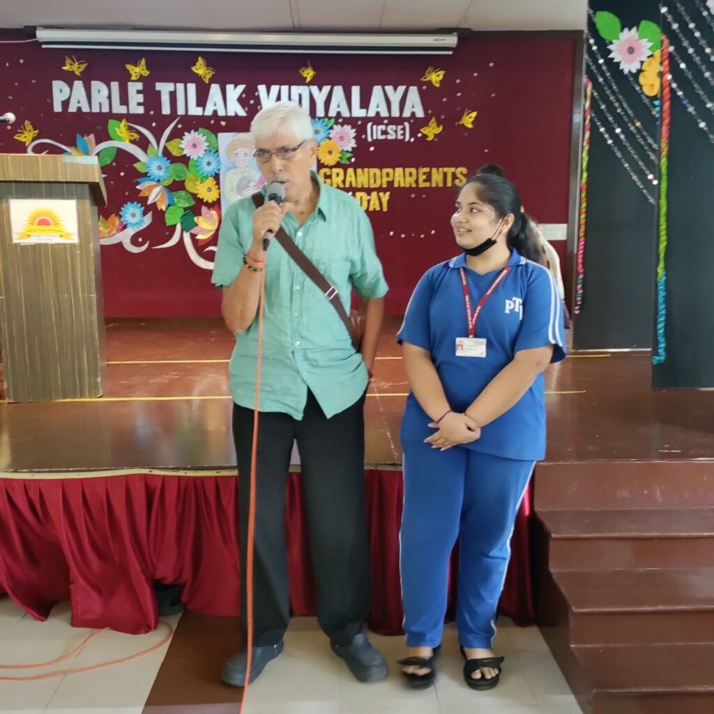 On 7th September 2022, the Secondary Section of Parle Tilak Vidyalaya (ICSE) celebrated Grandparents’ Day to thank and acknowledge the contribution of Grandparents. The celebration began with the welcoming of the grandparents which was followed by a poem recital. Exciting games such as Housie, Antakshari, and Who has the lucky card? were conducted to give the event a feel of being a live celebration. Spot prizes were also given to the grandparents. The scintillating song and dance performance by the students took the grandparents down memory lane. Students of Grade X expressed their gratitude by sharing what they had learned from their grandparents and how their grandparents played a vital role in inculcating values.