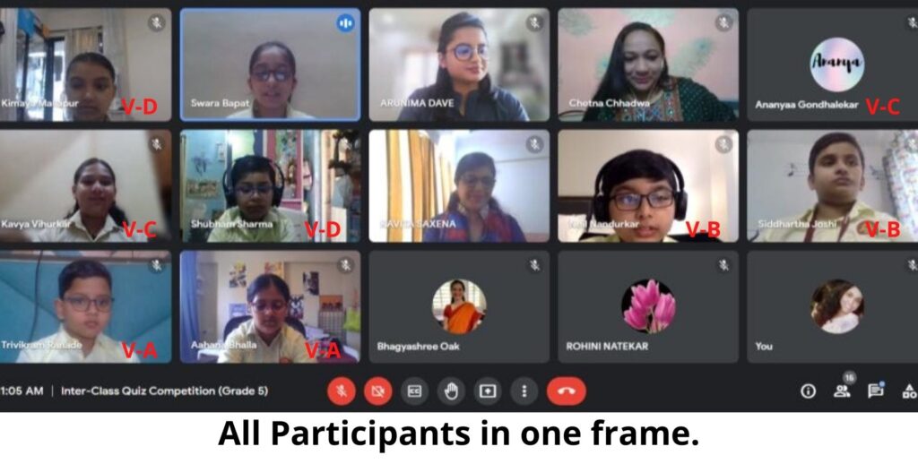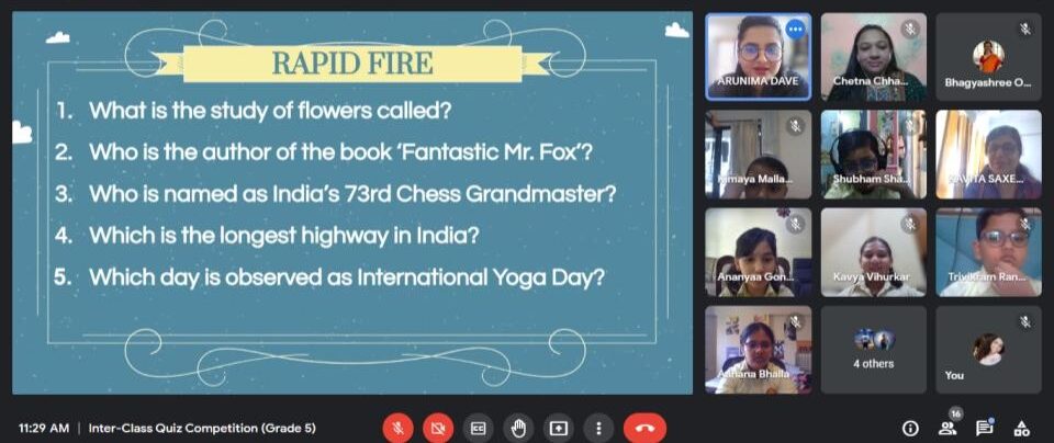 A virtual inter-class quiz competition was organized for the students of Grade 5. On 13th January, an elimination round was conducted for all grade 5 students and two best players from each division were selected for the finals.