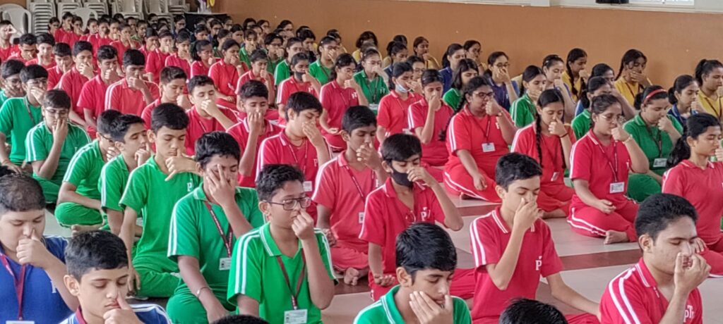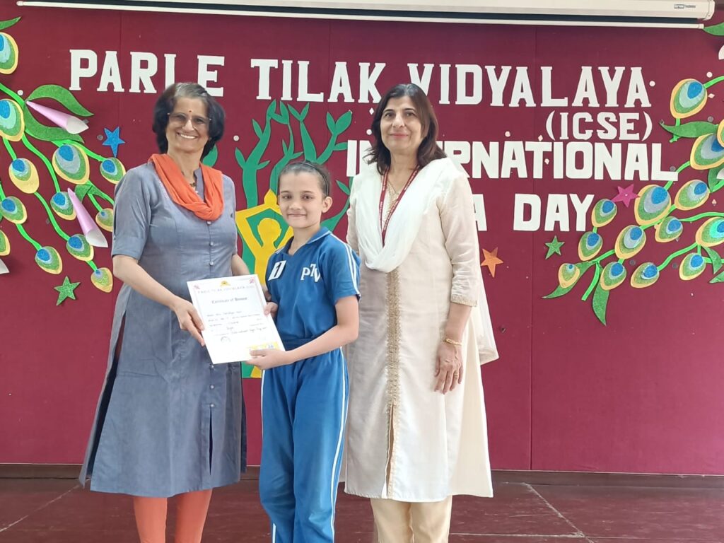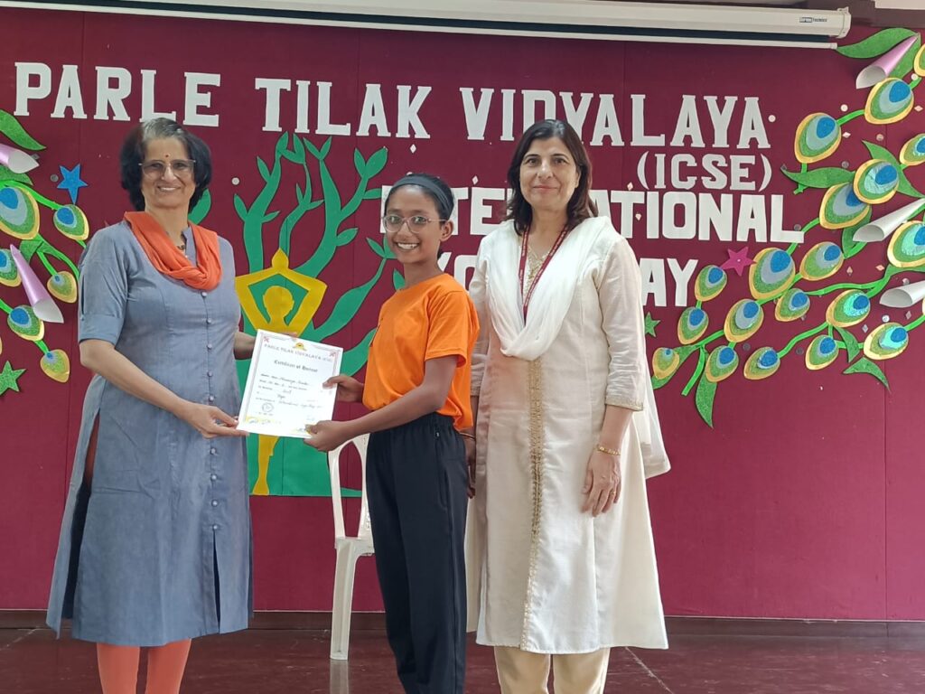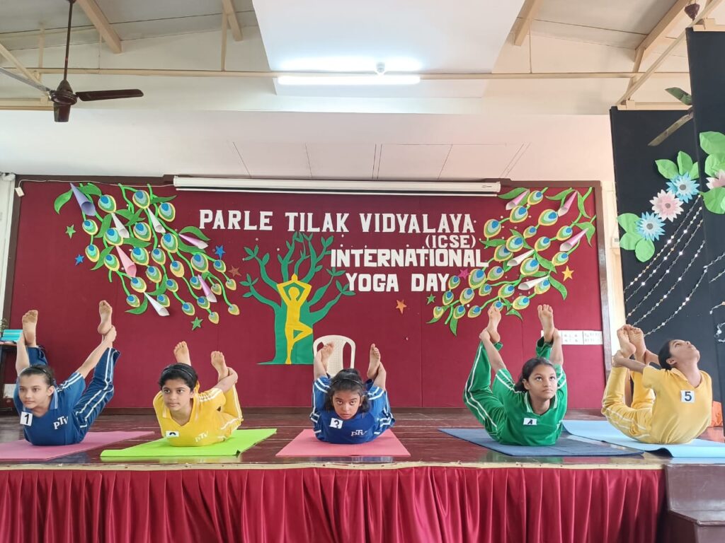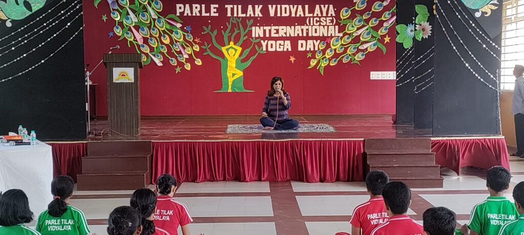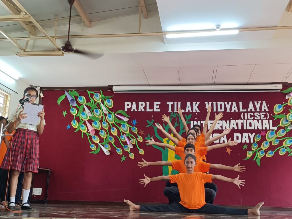 Recognizing the universal appeal of Yoga, Parle Tilak Vidyalaya (ICSE) celebrated International Yoga Day on 21 June, 2023 with immense zeal and positivity. Our yoga teacher, Mrs. Amruta Limaye along with the students of the secondary section prepared a beautiful programme to commemorate this day.