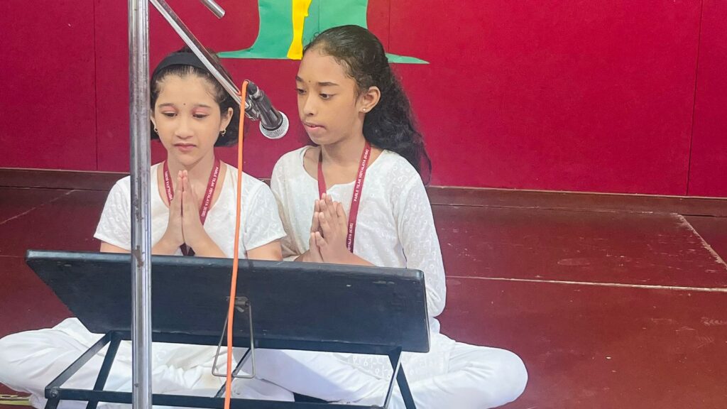 The programme started with a Upasana presented by Kavya Karanth and Shriya Krishnan of Grade IV, for the peace and wellbeing of our souls.