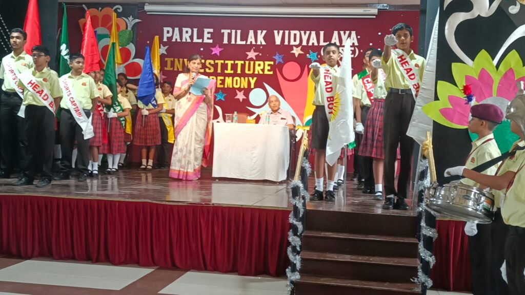 On June 14, 2024, the atmosphere at Parle Tilak Vidyalaya (ICSE) buzzed with anticipation and pride as students, staff, and parents gathered for the much-awaited Investiture Ceremony. The ceremony commenced with a grand procession of the newly elected council members, marching to the rhythm of the school band. In a moment brimming with pride, the newly elected members from the Primary and the Secondary Sections were inducted by Shri VInay Jog (Vice President, PTVA) and the Principal, Dr. (Mrs.) Arnavaz Bhagat. From a soulful choir performance to an energetic prayer dance, the cultural program added a vibrant touch to the event. The Investiture Ceremony concluded with the national anthem, leaving everyone with a sense of pride and responsibility.