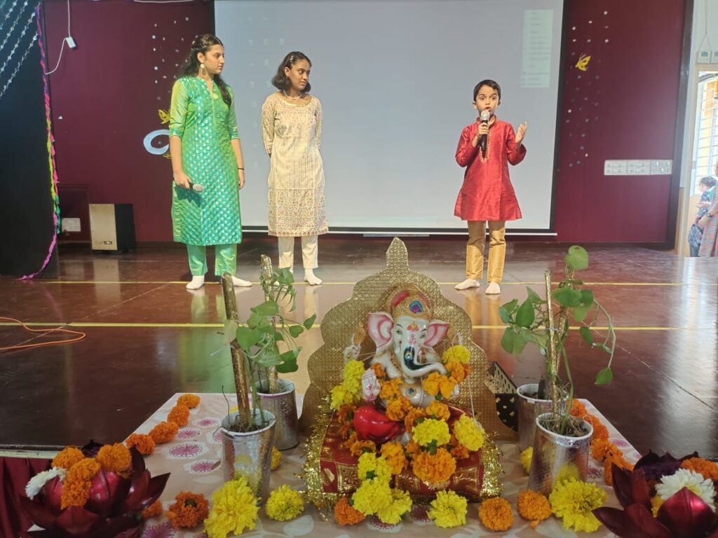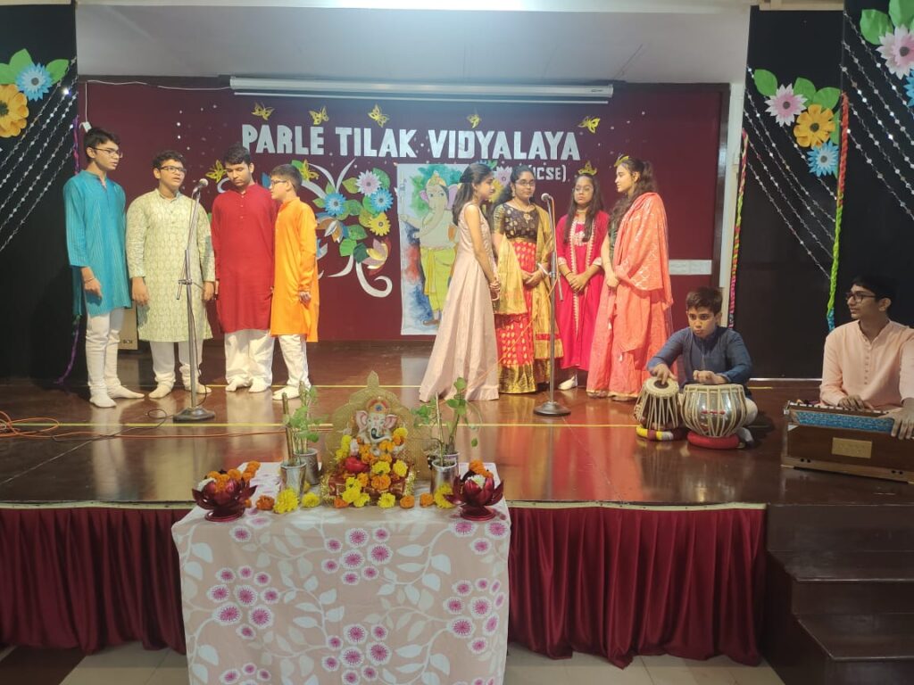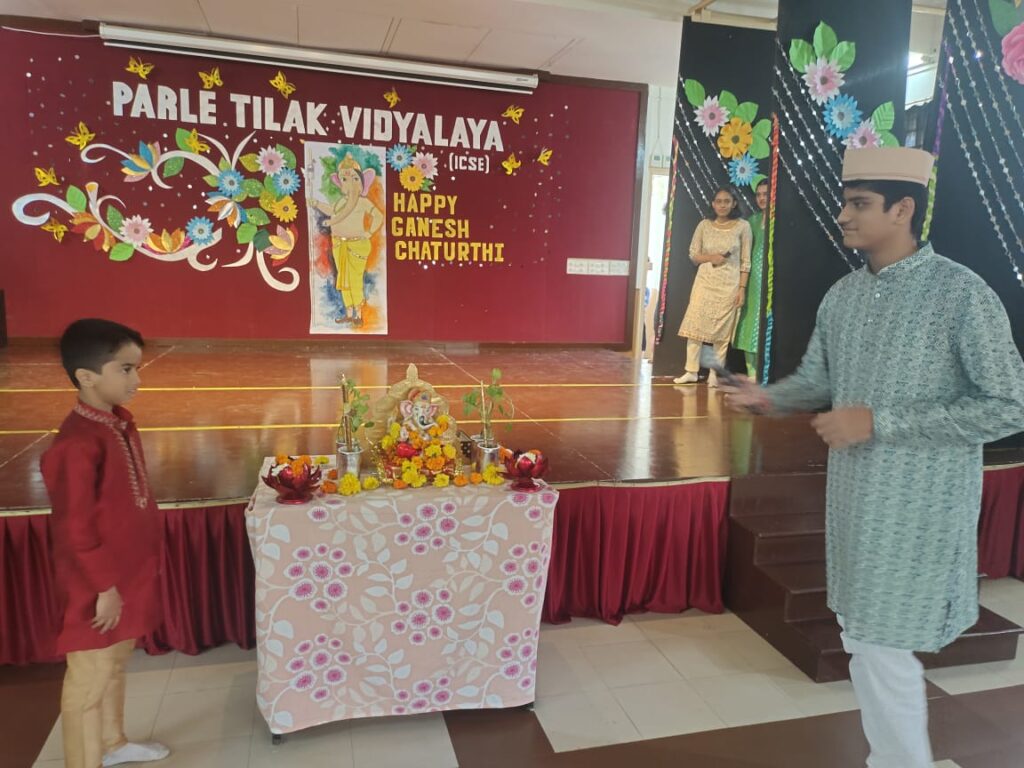 Parle Tilak Vidyalaya (ICSE) celebrated Ganeshotsav with love, devotion, prayers, and joy. A Special Assembly was conducted by the students which commenced with a melodious invocation followed by Atharvashirsha, songs, and dances. The assembly was not only entertaining but also informative and educational. It highlighted the fact that festivals are celebrated in their grandeur but not at the stake of our environment. Students also learned how a single festival could unite the diverse people of India.