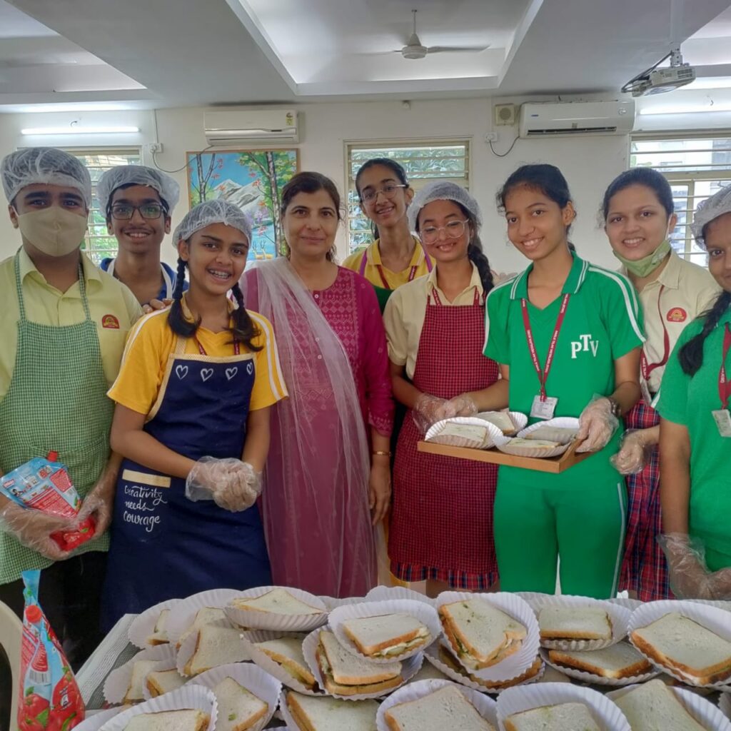Students of grades 9 and 10 of Parle Tilak Vidyalaya (ICSE) participated enthusiastically in the Khari Kamai activity for the Joy of Giving initiative on the 11th and 12th of October 2022. The students prepared sandwiches and sev puris and put up their stalls in the school. The overwhelming response from grades 6 to 8 was noteworthy. The aim of the activity was to bring awareness among the students on gratitude and selfless charity. The students thoroughly enjoyed selling their snacks joyously for a noble cause. The collection of stalls is further going to be donated to underprivileged children and bring a smile to their faces. The Principal Dr. (Mrs.) Arnavaz Bhagat encouraged and motivated the students with her support and guidance.