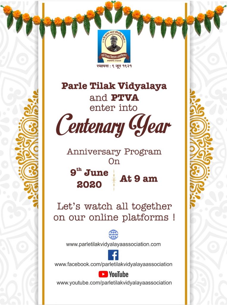 Parle Tilak Vidyalaya and Parle Tilak Vidyalaya Association is entering into its centenary year on 9th June 2020.