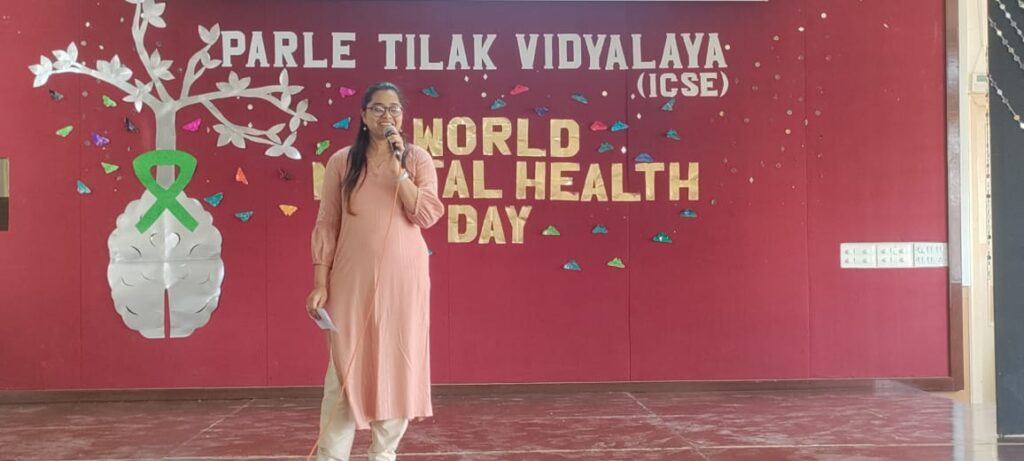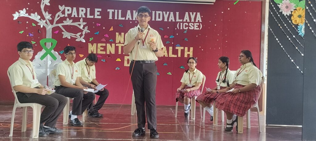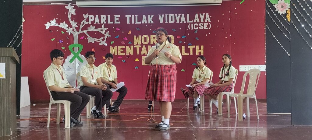 Mental Health Day was observed with great enthusiasm and a strong commitment to raising awareness about mental well-being by the teachers and students of Parle Tilak Vidyalaya (ICSE) on 10th October, 2023. The Mass assembly featured an inspiring speech from the Principal of the school emphasizing on managing stress, building resilience, and seeking help when needed. The interactive session on ‘Self Care’ conducted by the school counsellor, fostered an environment of openness and understanding regarding mental health issues. The Debate on ‘Is screen time and social media a major contributor to the rise in mental health issues among teenagers?’ was a healthy discussion and a learning experience for the students on mental well being. PTV (ICSE) continues to create a supportive and empathetic community that values and prioritizes mental health through such programmes.