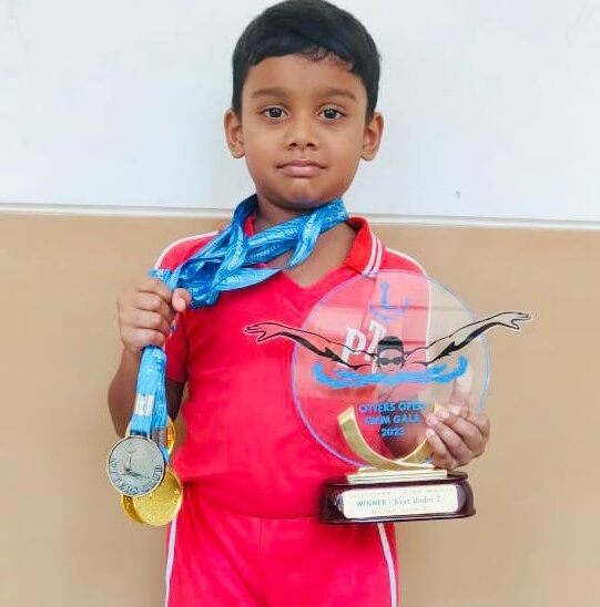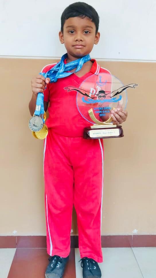 Malhar Gitaye of Grade II-B participated in the 36th Otters Open Swim Gala, 2023. It was held on 15th April at the Otters Club, Bandra. Malhar won the following awards in the Under 7 Boys Category: