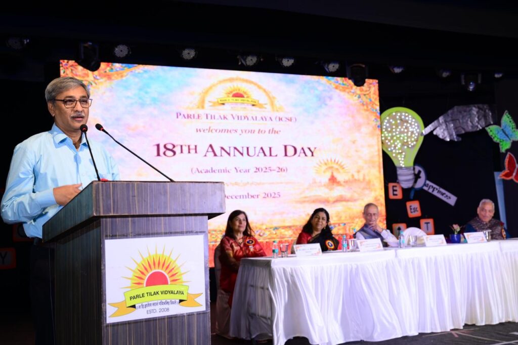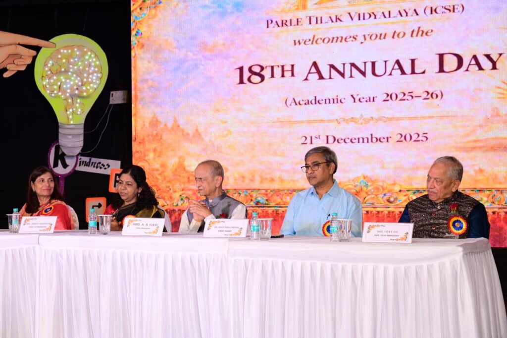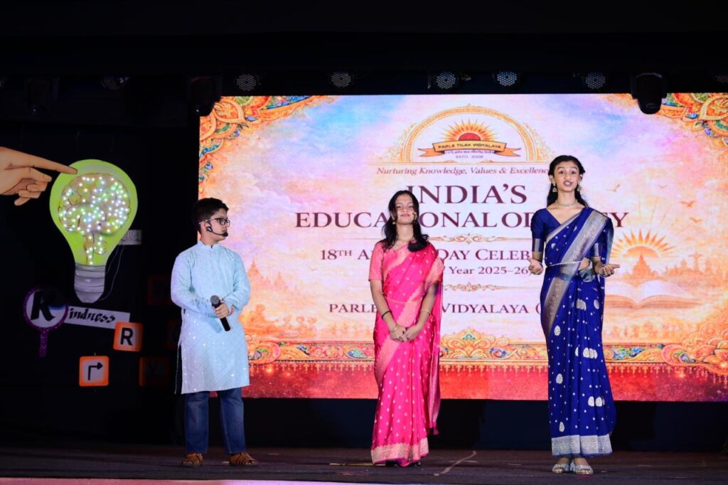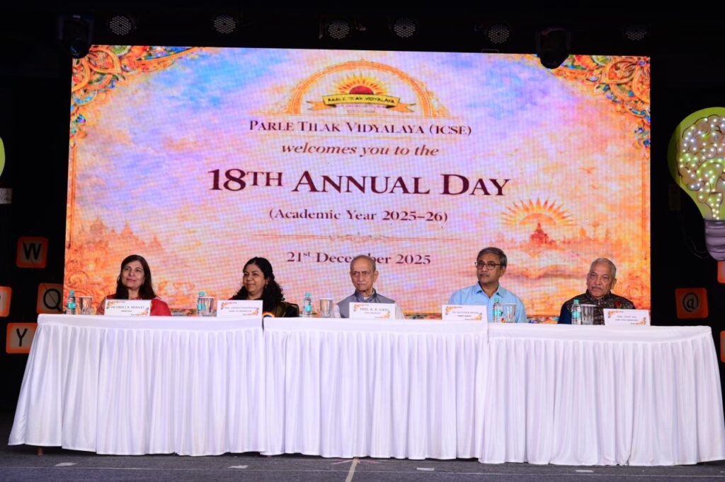 Parle Tilak Vidyalaya (ICSE) Secondary Section celebrated its 18th Annual Day with great pride and enthusiasm, presenting a thoughtfully curated programme based on the theme “India’s Educational Odyssey.” The event beautifully traced the journey of Indian education from ancient gurukuls to modern, future-ready learning, highlighting its enduring values and transformative impact.