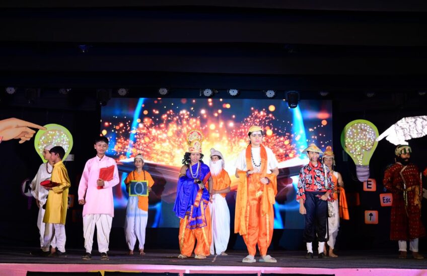 The celebration began on a solemn note with an invocation, setting the tone for an evening of reflection and celebration. Through a series of well-coordinated cultural performances, students portrayed the evolution of India’s education system, seamlessly blending tradition, innovation, and vision.