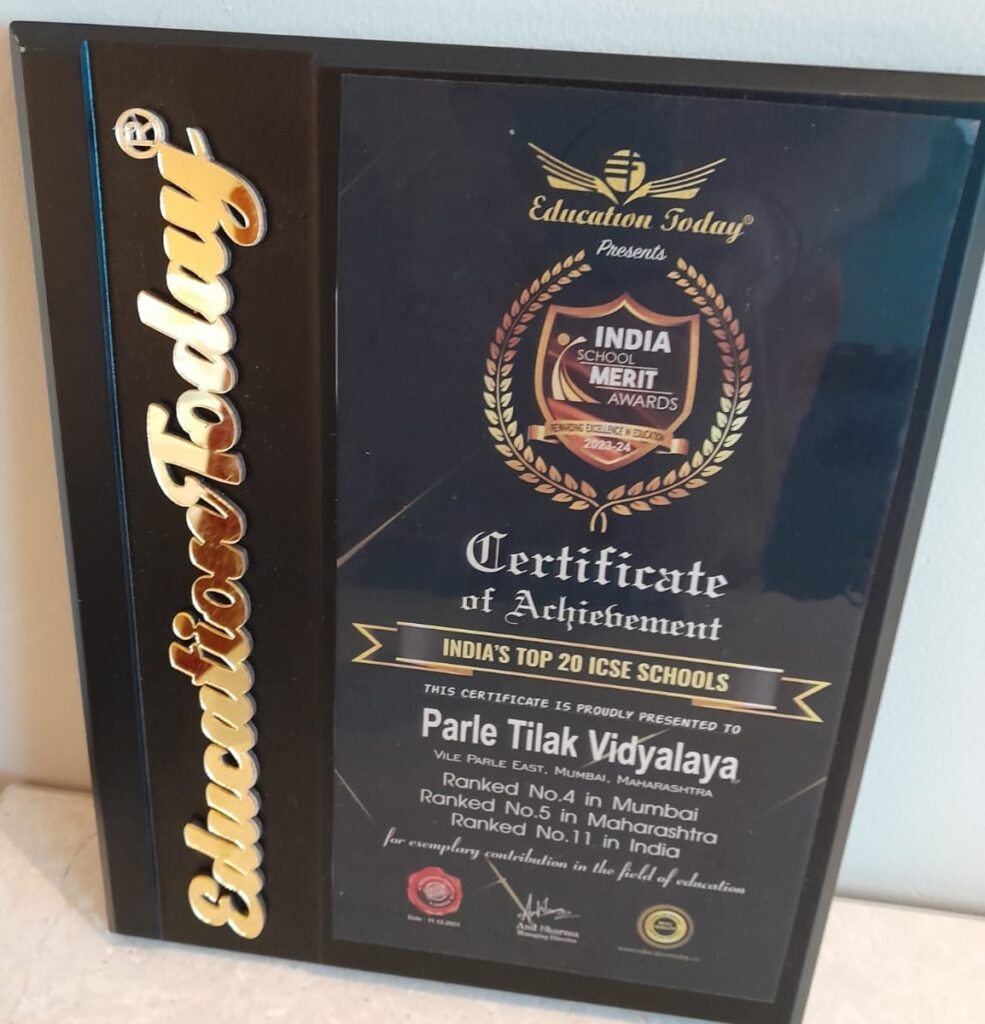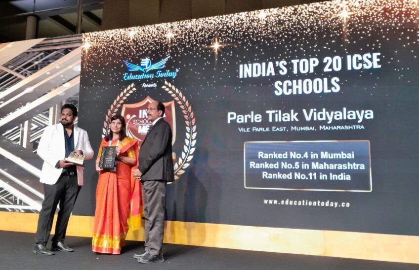 We are proud to announce that at All India Level, Parle Tilak Vidyalaya (ICSE) has received the prestigious INDIA SCHOOL MERIT AWARD and is Ranked No.11 in India. No.5 in Maharashtra & No.4 in Mumbai under the Category – Top 20 ICSE Schools in a survey conducted by EducationToday. India School Merit Awards, 2023 are based on Jury Rating, Parent’s Votes (93,528 votes) &EducationToday Team Analysis (Perception based, Survey & Nomination based). The Principal, Dr. (Mrs) Arnavaz Bhagat received the award at the ceremony held in Bangalore on 11th December 2023.
