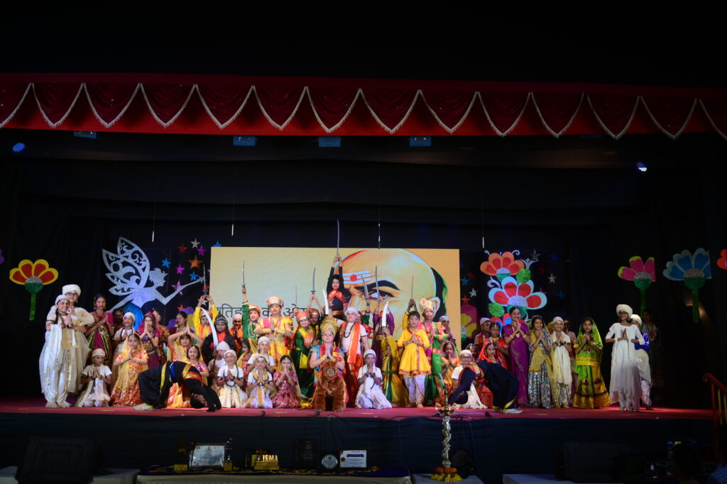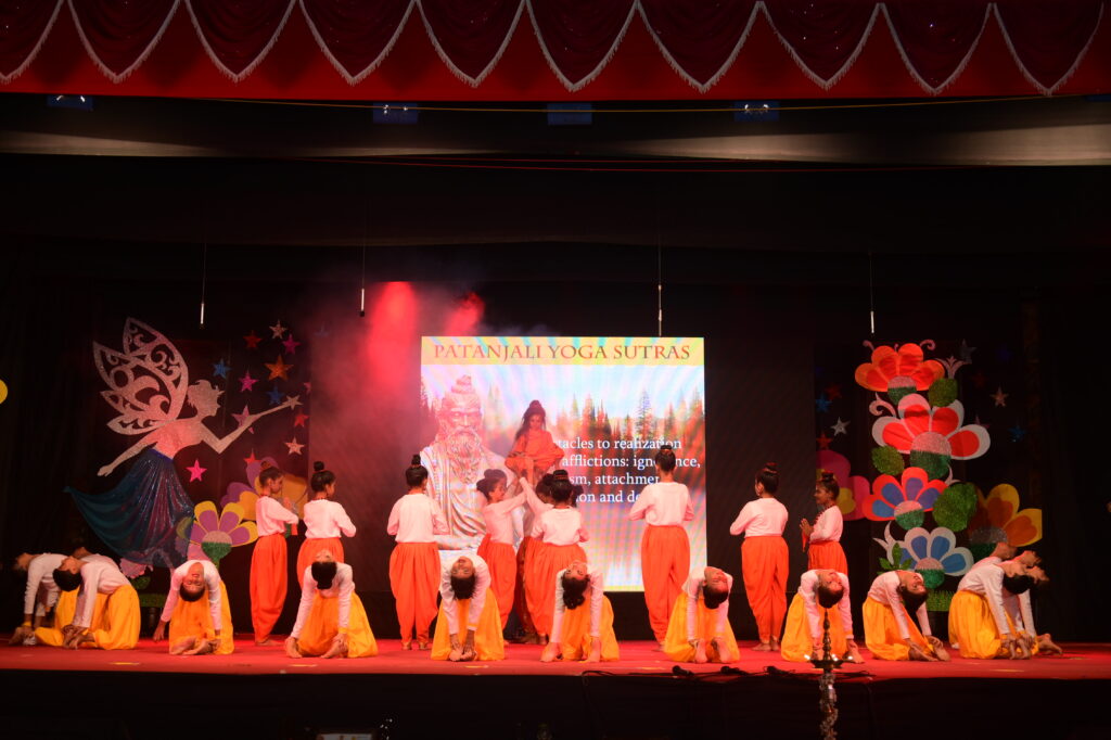 The cultural extravaganza featured Grade 1 students presenting the vibrant ‘Footsteps of Joy’ dance, showcasing India’s rich culture. An insightful English play titled ‘Dusk to Dawn’ depicted the transformative journey of a young affluent boy, emphasizing life lessons, character growth, and the value of family and friendships. Additionally, ‘Yogarambh’ creatively blended ancient and modern yoga poses, emphasizing the significance of yoga practice. The ‘PTV Band and Choir’ captivated the audience with an engaging medley of English songs, prompting everyone to sing along with our talented performers. The Marathi skit ‘Shyamchi Aai,’ inspired by the book, emphasized how parental guidance from the beginning shapes an individual’s path to greatness. Young dancers honoured our motherland with a patriotic dance, using various props, in a performance called ‘Jai Ho India.’ Additionally, the Hindi skit, titled ‘Itihaas ki or,’ depicted a chapter from Chanakya’s great teachings. The final act, ‘Resilience,’ showcased the theme of perseverance despite challenges, urging individuals to make the most of life’s offerings.