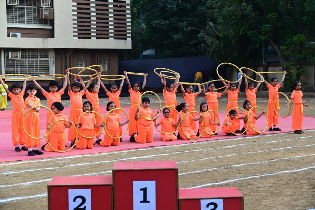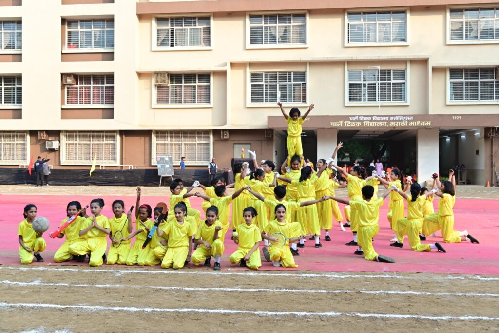 Parle Tilak Vidyalaya (ICSE) held its 15th Annual Sports Day on 12th November 2022. After two years of online sports meets, students were seen enthusiastically participating in the various heats, generally held before the meet. Nothing could deter the true spirit of sportsmanship among the students. The Grand Opening Ceremony was followed by a March Past, Mass Drill, Aerobics, and an excellent display of the School Band.
