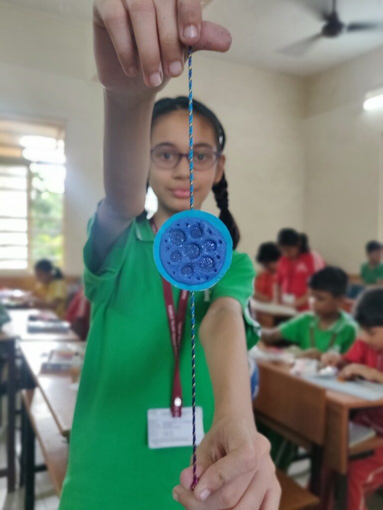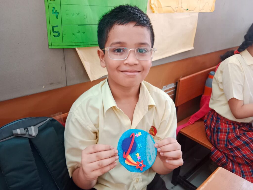 Grade 5: Space and Beyond: The final grade embarked on a cosmic journey, crafting Rakhis inspired by celestial bodies, rockets, stars, and the vast universe.