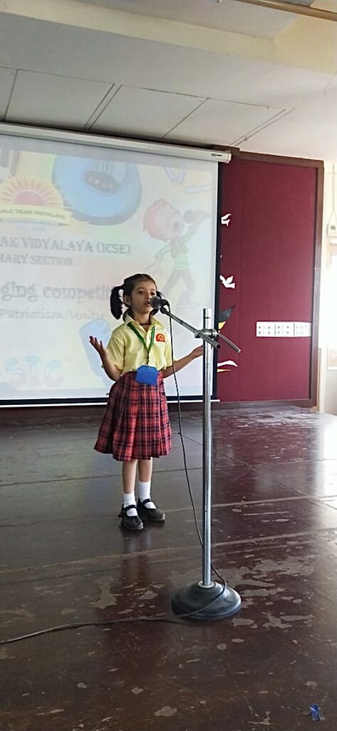 A Solo Singing Competition was organized for the students of the primary section, the final round of which was held on 19th April, 2022.  The theme for the competition was Patriotism / Unity. The participants from grade 1 to 5 put forth their enthralling performances. The competition was judged by Sangeet Visharad Mrs. Prachi Madgavkar.  All our budding stars who were a part of the competition made the competition vibrant and lively.  All of them sang to their level best and evoked feelings of patriotism in each one of us.  The winners were well appreciated by the judge.