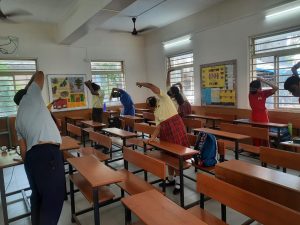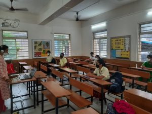 Students of standard X attended the school through ‘Hybrid Classrooms’. After almost a year and a half of silent school corridors and empty classrooms, it was indeed a long awaited moment to welcome our dear students back to school.