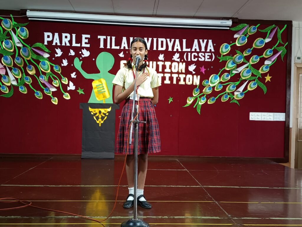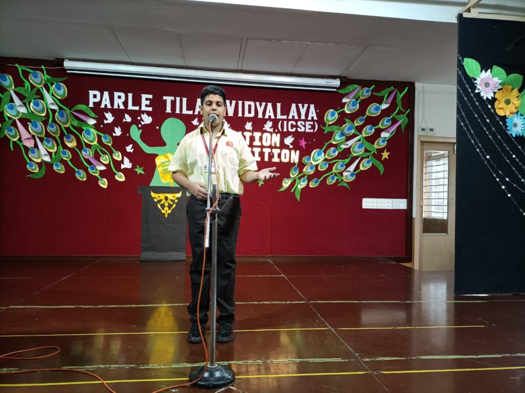 The Secondary School of Parle Tilak Vidyalaya (ICSE) conducted an Inter Class English Elocution Competition for Classes VI to VIII, on 7th July, 2023. This was done to promote English speaking skills, in terms of pronunciation, delivery, and voice modulation, and to develop English in its spoken form. Several children gave in their names as participants, which resulted in a keenly contested audition round. The poems selected were varied and very enjoyable.