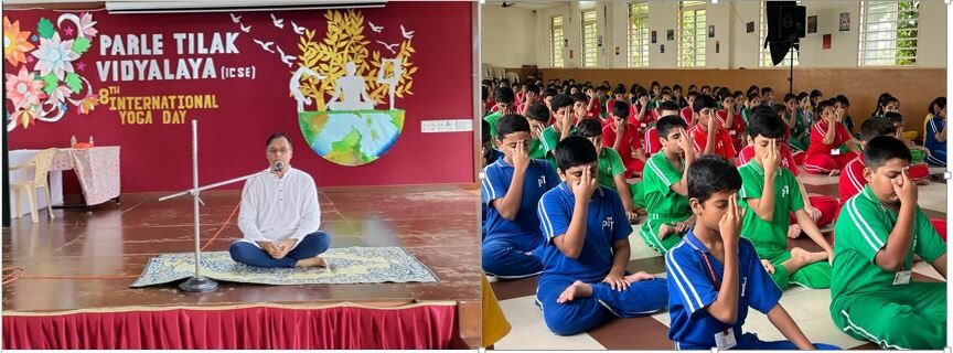 Recognizing the universal appeal of Yoga, Parle Tilak Vidyalaya (ICSE), Secondary Section, celebrated International Yoga Day on 21 June 2022 with immense zeal and positivity. The day began with meditation for the students of Grades 9 and 10 under the guidance of Mr. Nitin Patki CEO, of New Age Yoga Institute. This was followed by a plethora of activities that gave an opportunity to the