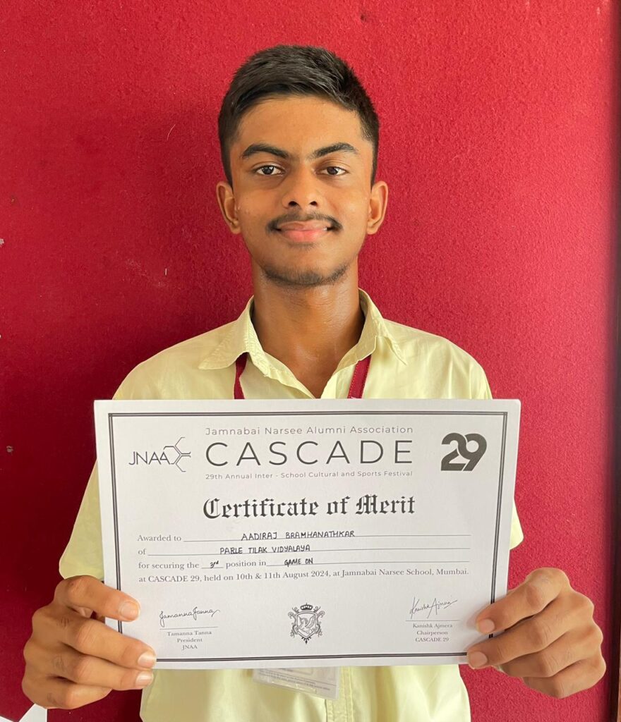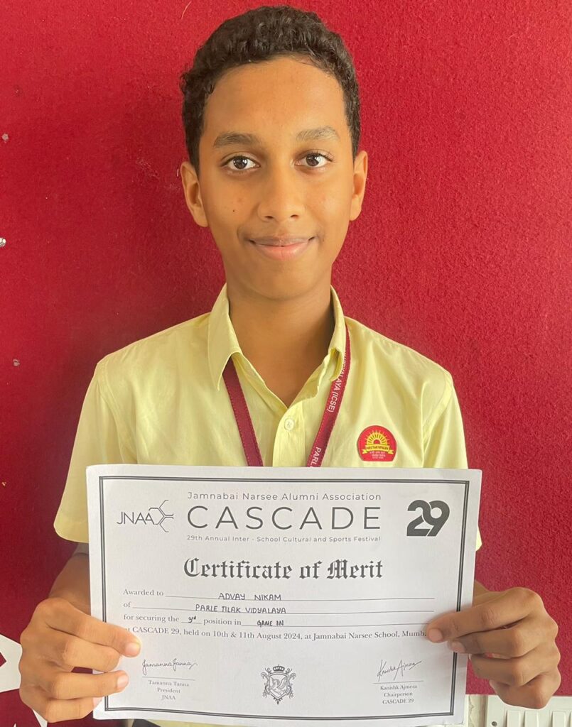 We are thrilled to announce that Aadiraj Bramhanatkar(Grade 9)and Advay Nikam (Grade 9) from Parle Tilak Vidyalaya (ICSE) have bagged third place in the Games on (Sports quiz ) event at Cascade 29 organized by Jamnabai Narsee School and Management college on 10th and 11th August 2024.