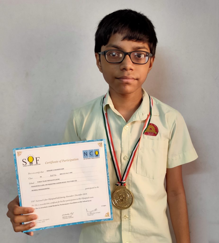 Anvay Shinde of class 8 received a bronze medal and a cheque of 1,000 rupees for ranking 4th at zonal level.